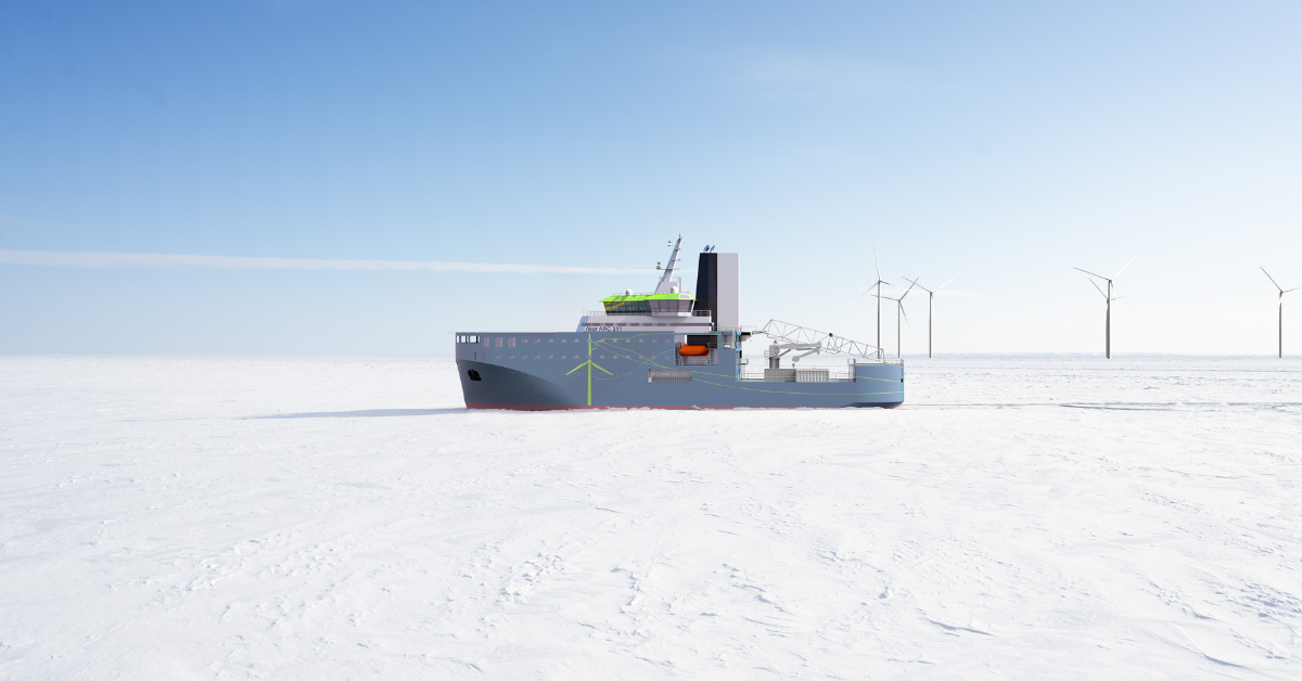 Lindroos adds that preliminary estimates suggest the construction cost is about 5–10% higher than a similar-sized open-water model. This increase accounts for additional steel weight, propulsion power, and winterisation.