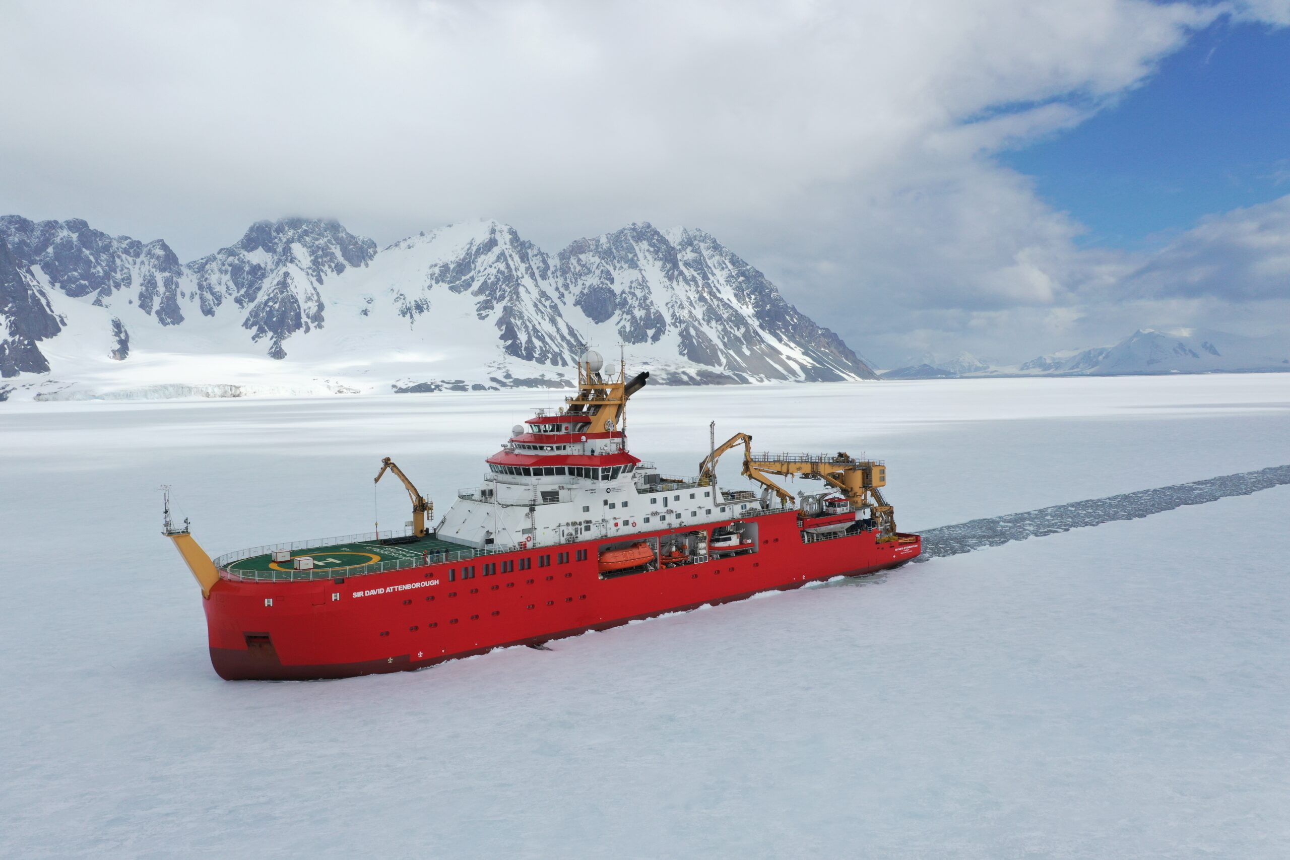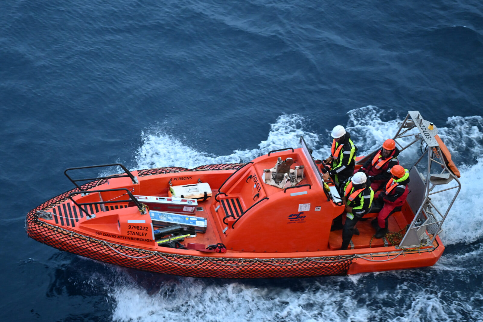 After departing from the Falklands Islands, RRS Sir David Attenborough first sailed to the island of South Georgia, to deliver supplies to the local research station at King Edward Point. The team also had the chance to visit the museum at the abandoned whaling station of Grytviken, Sir Ernest Shackleton’s grave, and attend a barbeque, before continuing towards Antarctica in search for suitable ice conditions for testing.