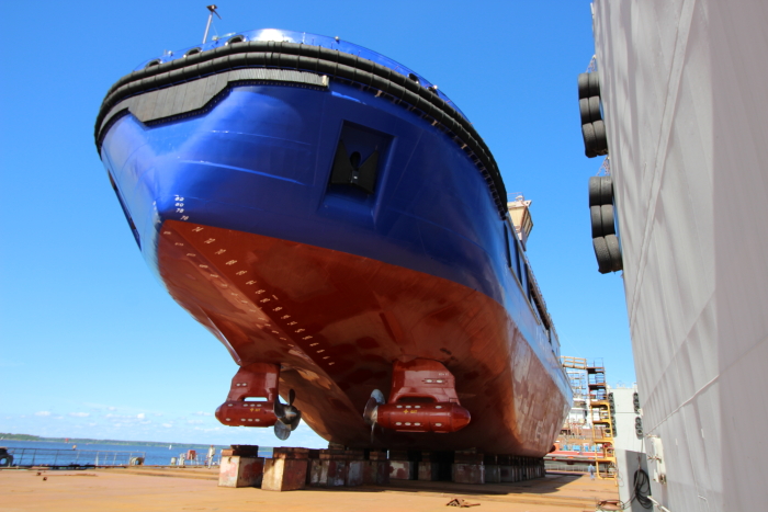 Ob – the most advanced port icebreaker in the world. Our newest port icebreaker design, Ob, was designed for assisting very large LNG carriers in the Arctic harbour of Sabetta. She can break 1.5-metre-thick level ice in both ahead and astern directions and the quad-screw propulsion configuration provides superior manoeuvrability and control when operating in close proximity to vessels. She is powered by the world’s most efficient four-stroke diesel engine and features a DC grid to further improve efficiency and reduce fuel consumption.